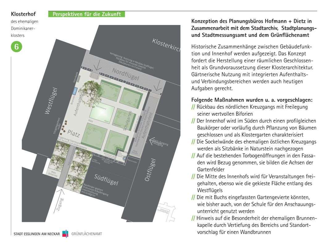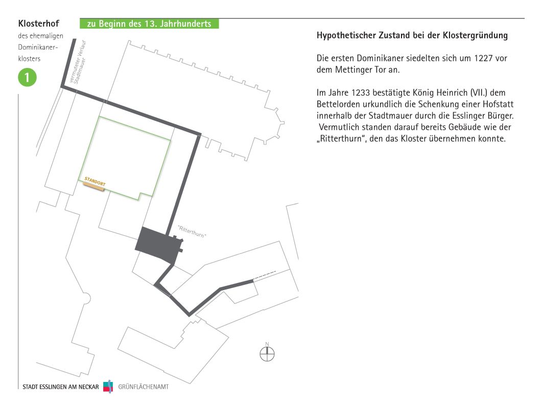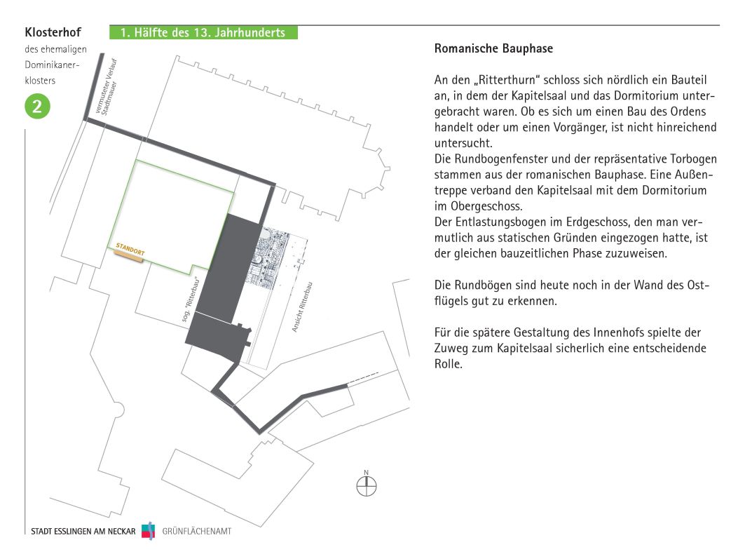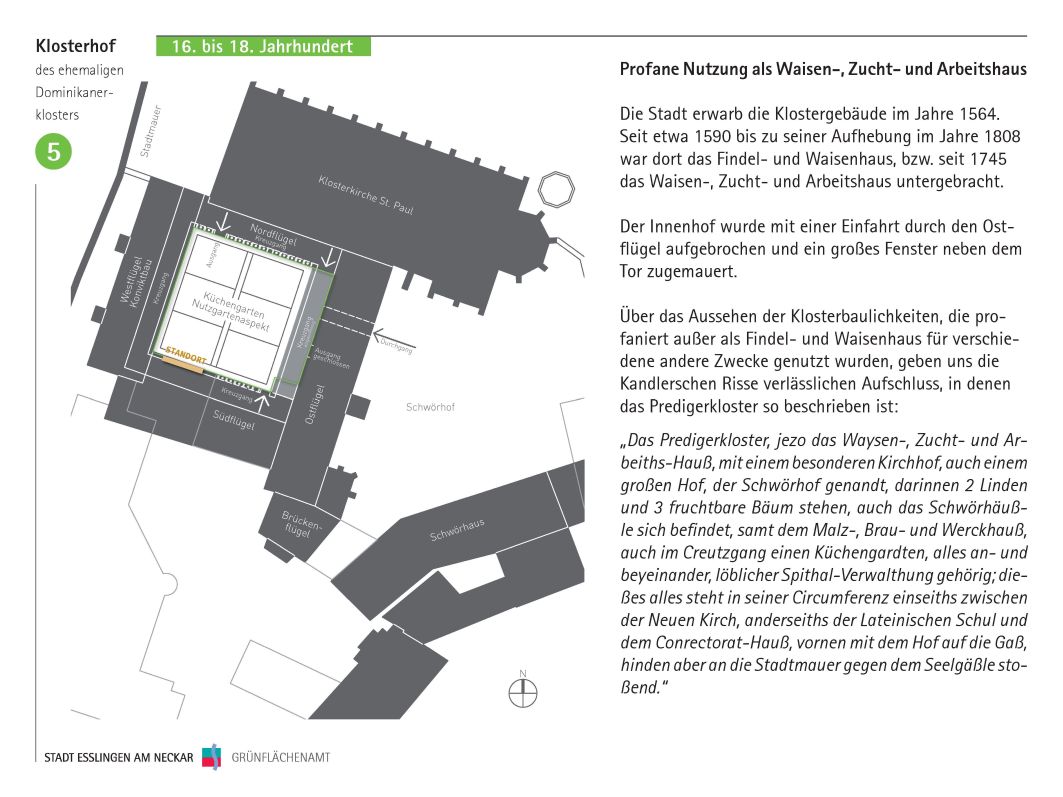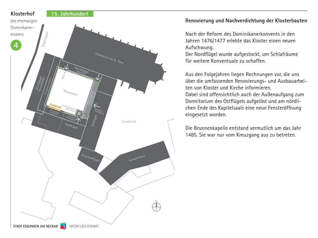 im westlichen Hof der Waisenhofschule, dem ehemaligen Innenhof des Kreuzganges südlich des Münsters, wurden vom Grünflächenamt sechs Tafeln angebracht, auf denen Sie sich über die Baugeschichte von Kirche und Kloster sowie einen Vorschlag zur künftigen Gestaltung informieren können.